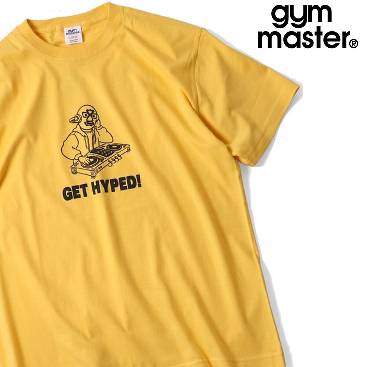 gym master ジムマスター 5.6oz GET HYPED TEE メンズ 半袖Tシャツ 発泡プリント コットン100% イエロー