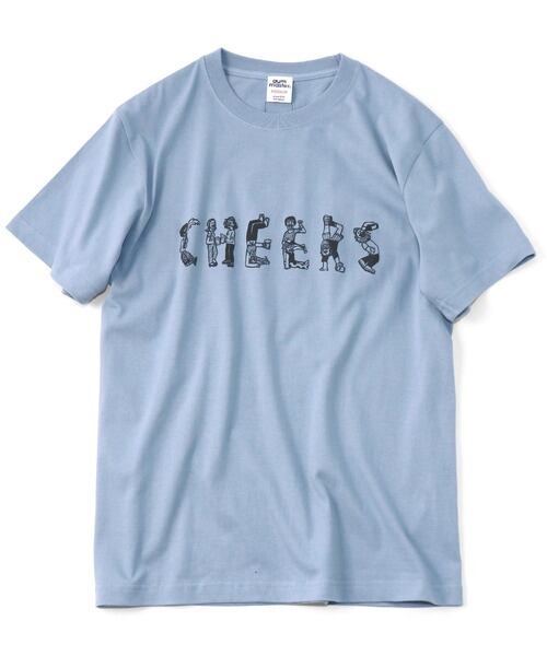 gym master ジムマスター 5.6oz CHEERS TEE メンズ 半袖Tシャツ 発泡プリント コットン100% 夏 クラウディーブルー