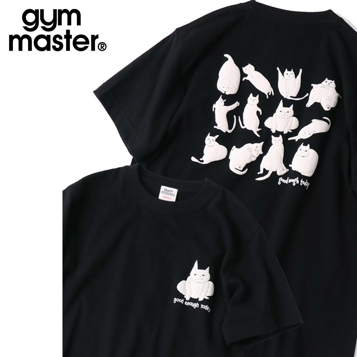gym master ジムマスター 5.6oz good enough today TEE メンズ 半袖Tシャツ 猫 発泡プリント コットン100% ブラック