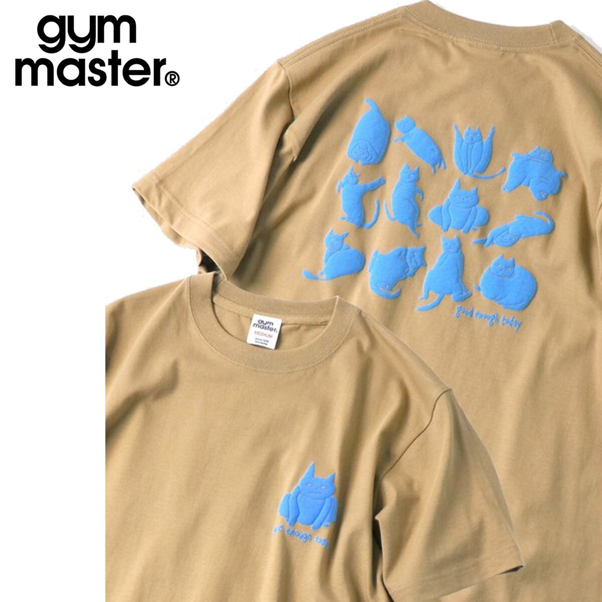 gym master ジムマスター 5.6oz good enough today TEE メンズ 半袖Tシャツ 猫 発泡プリント コットン100% カーキベージュ