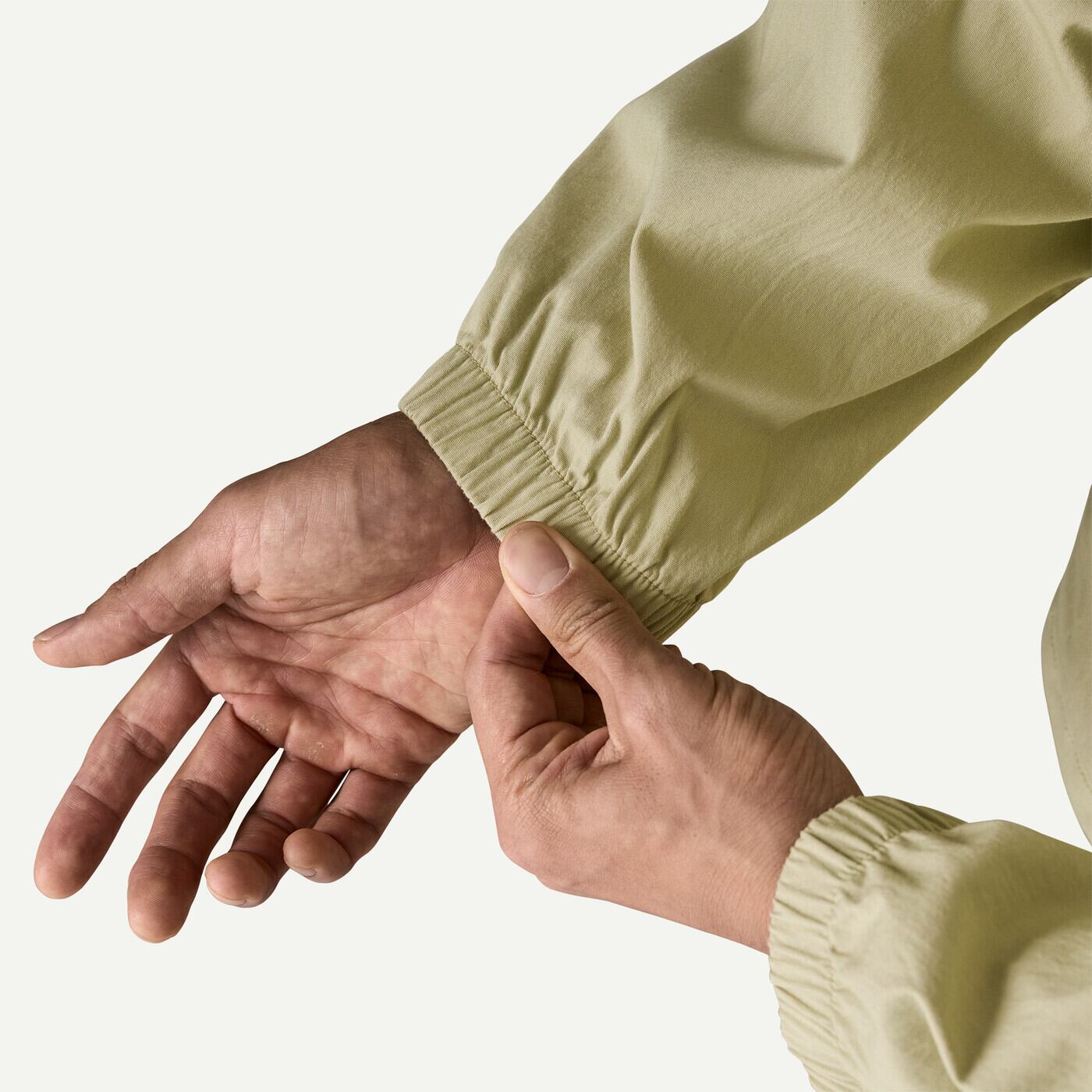フロントは襟上まで閉じられるフルジップ仕様で、防風性を高めた設計。袖口は伸縮性がありフィット感も良好です。
