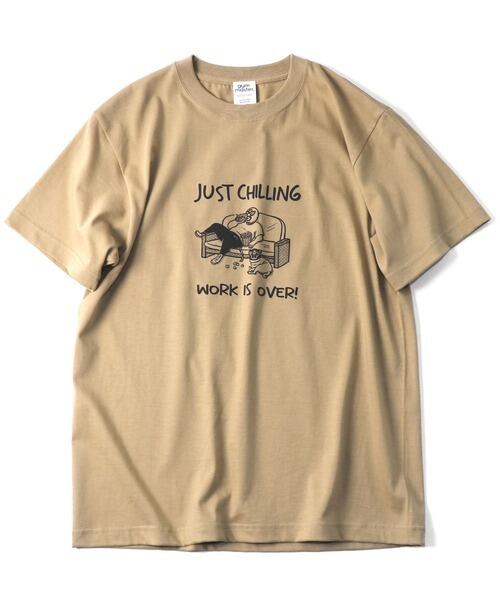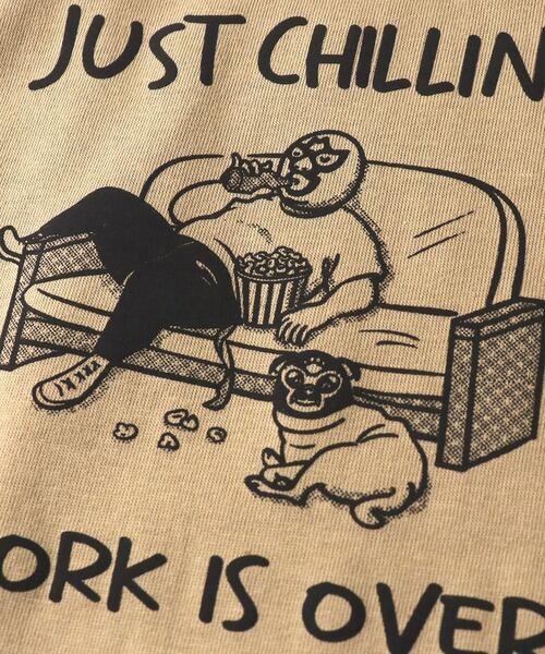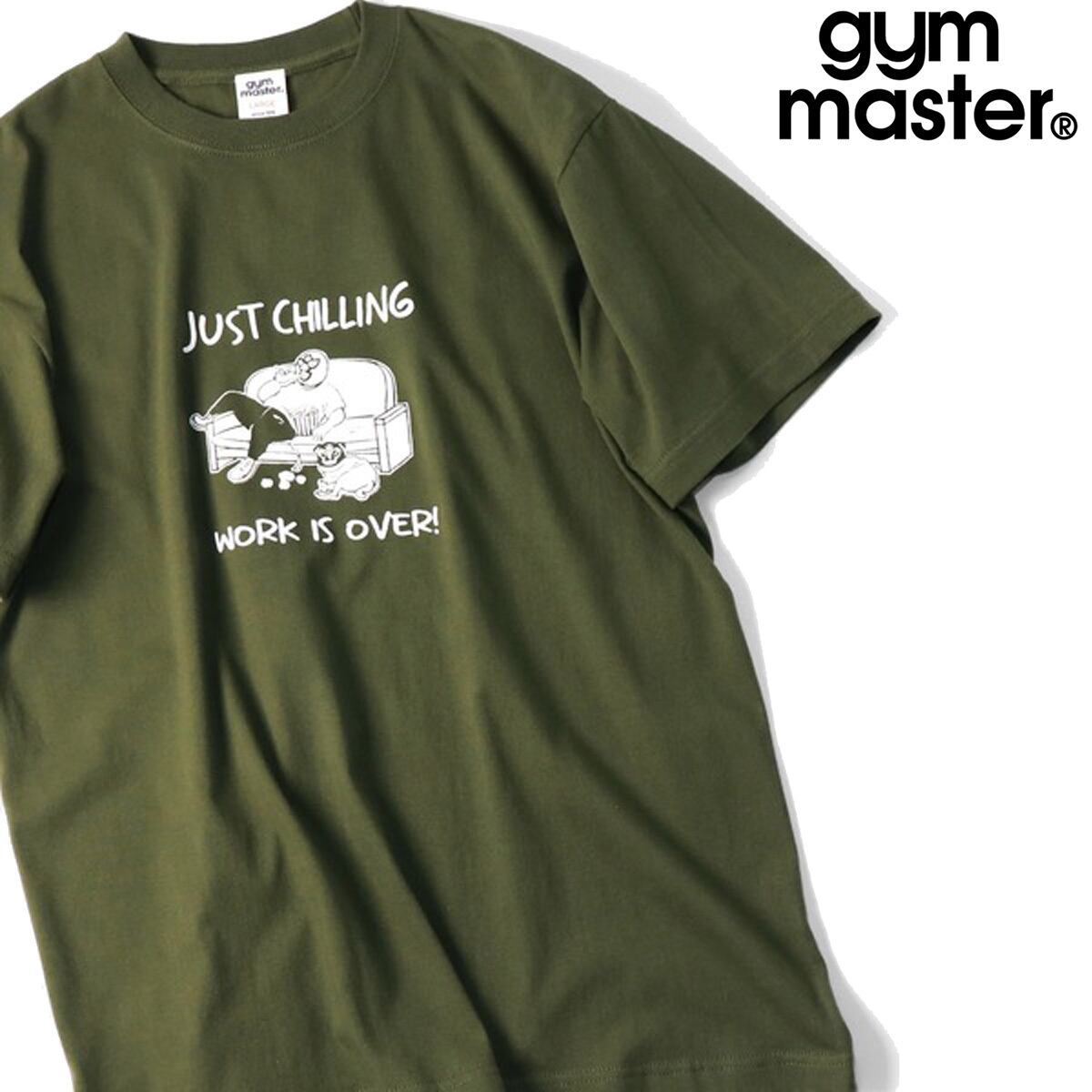 gym mastr ジムマスター JUST CHILLING リラックスTシャツ|5.6oz コットン100%|発泡プリント|犬好き・ビール好きに オリーブ
