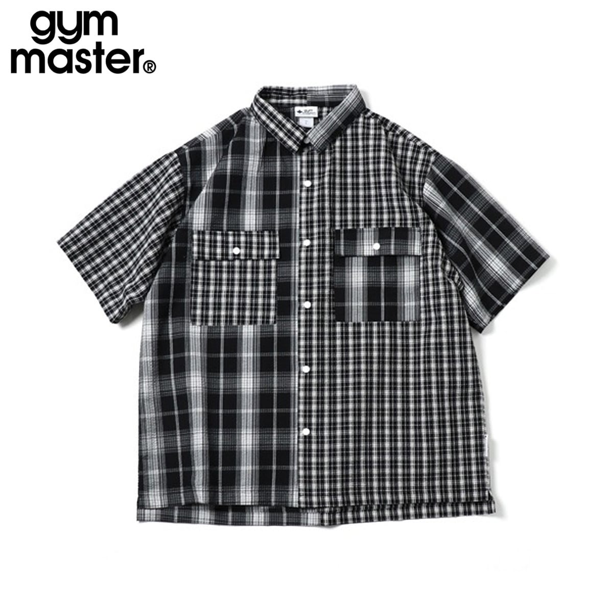 gym master ジムマスター 2WAYスナップボタン半袖シャツ|バンドカラー&レギュラーカラー・綿100%・ワークシャツ G133786 ブラックチェック