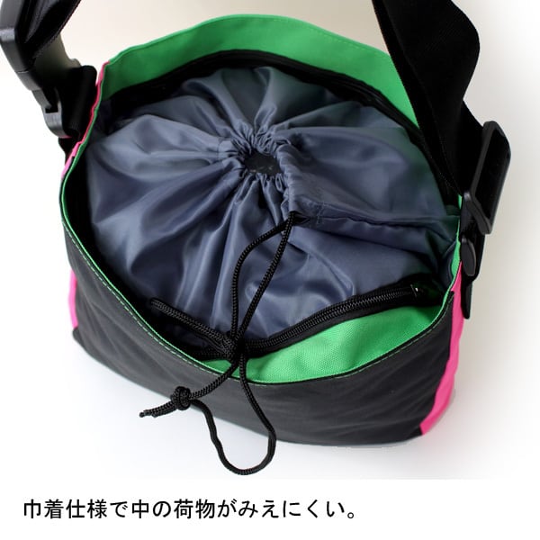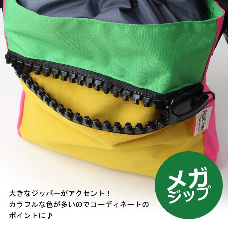 フロントポケットのメガジップがアクセントになったショルダーバッグ。開口部は巾着になっており、それとは別に両側に底の浅いポケット付。よく出す荷物はそこに入れておけば巾着を開けずとも簡単に取り出すことができます。カラーもカラフルなものが多めでコーディネートのアクセントにおすすめです♪