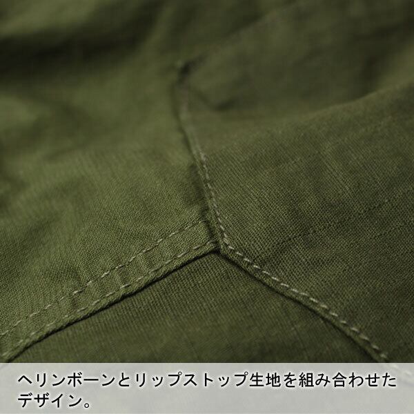異素材生地のグラデーションで見せる ロングパンツ。 素材感の違うヘリンボーン/ピケ/リップストップを 組み合わせることでエッジの利いた仕上がりに。 ポップな配色でジップのカラーもポイントになっています。 スタイルはテーパードで使いでスッキリと見えるシルエットになっています。