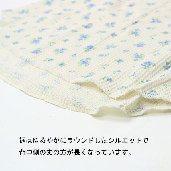 人気花柄シリーズに新しいデザインのタンクトップが登場。 ベースはナチュラルで淡くにじんだような小花プリントが優しい雰囲気。サックスとピンクの2色展開です。 適度な保温性と凹凸のあるワッフル素材は柔軟性・伸縮性・吸水性・吸湿性に優れていて、着心地抜群! タンクトップの裾はラウンドスタイルになっています。