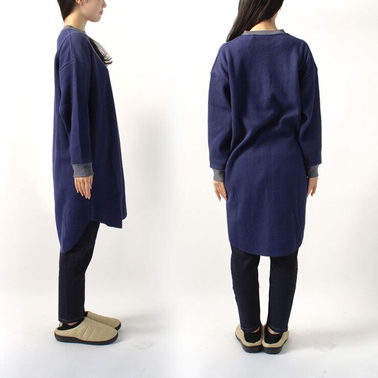 ワッフル生地のワンピース。ミリタリーのイメージも強いワッフル素材。 身体にフィットする素材ながら、程よくゆったりとしたサイズ感で、 ちょうどいい抜け感を演出できるシルエットです。