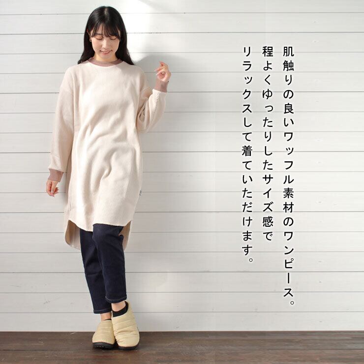 ワッフル生地のワンピース。ミリタリーのイメージも強いワッフル素材。 身体にフィットする素材ながら、程よくゆったりとしたサイズ感で、 ちょうどいい抜け感を演出できるシルエットです。
