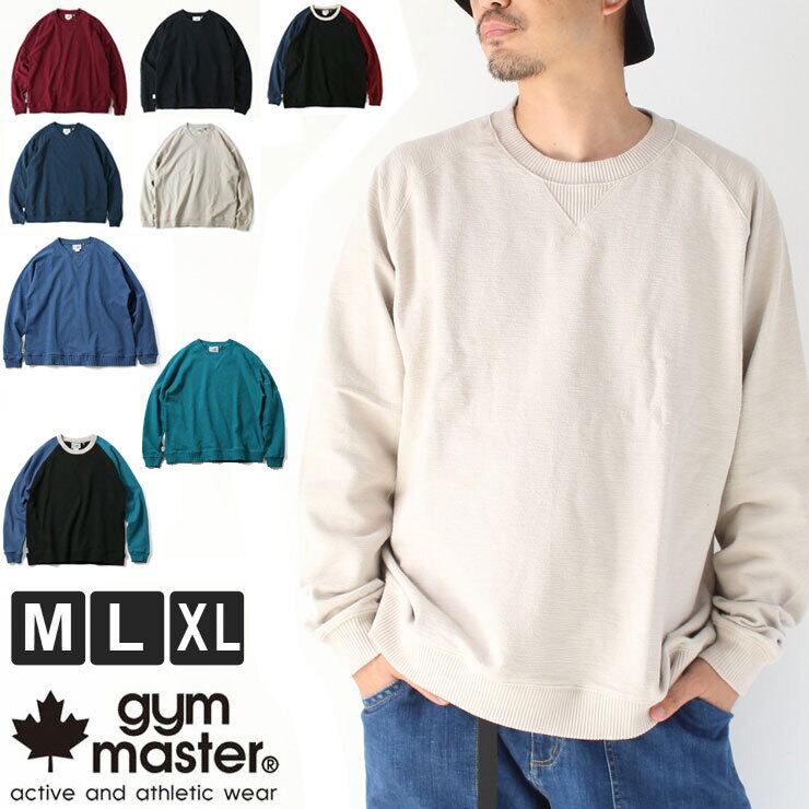gym master ジムマスター 10.4ozブロックインレー クルーネックスウェット レッド(26)