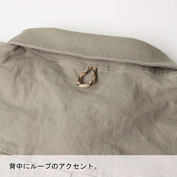 着回しのできるシャツジャケット。 程よい厚みでややハリのあるコットンツイル生地を採用。ストレッチが効いているので動きやすくなっています。
