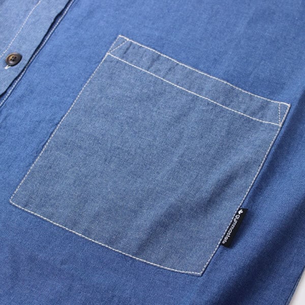 さらりとしたシャンブレー素材感で 着心地抜群のワンピース。 袖は、フレンチスリーブ、 襟元はノーカラーで、首から肩にかけてと、 バックのよーく部分にギャザーが入っており、 シンプルながら女性らしいデザイン。 1枚で着ても、ベルトなどでシルエットを変えても 可愛く着ていただけます。 アウトドアシーンにもピッタリです。