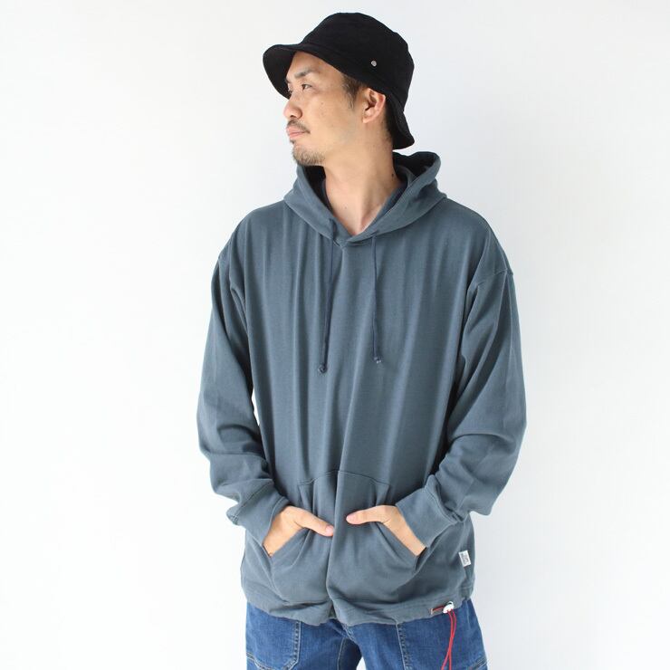 ゆったりサイズでリラックスして着こなせるフードパーカー。