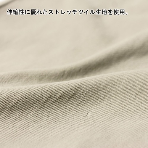 伸縮性に富んだストレッチツイルを使用したテーパードパンツ。