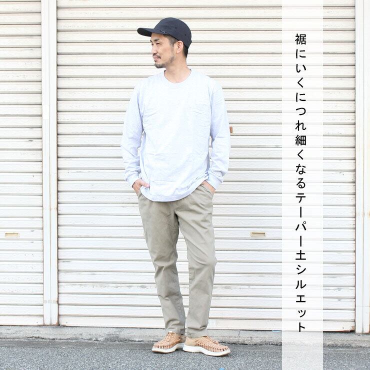 伸縮性に富んだストレッチツイルを使用したテーパードパンツ。