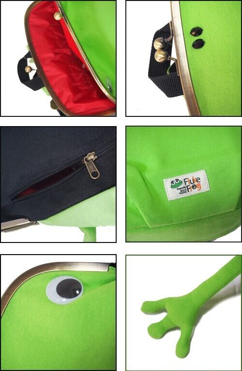 くりくりした目玉と、ぐで〜んとした手足が付いていて、 ガマグチになっている口を開けると、 真っ赤な口内が見える 愛くるしいカエルのガマグチリュック。