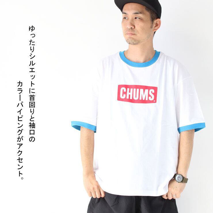 チャムス リンガーtシャツ メンズ CHUMS チャムス オーバーサイズドリンガーロゴTシャツ ホワイト/レッド(W014)