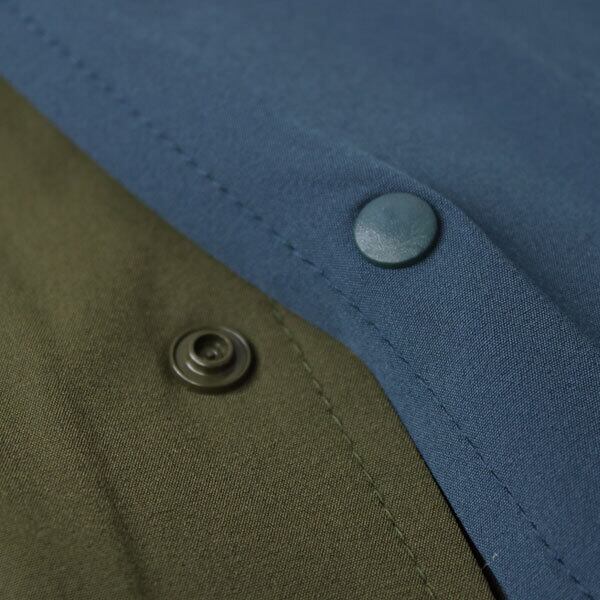 ストレッチの効いたナイロンを使用したワークシャツ。 スナップ仕様で着脱も楽ちん。 汗にも洗濯にもすぐに乾くので、旅行先やキャンプの強い味方。 使用しているナイロンは、たて、横、斜めとストレッチの効いたナイロン。 動きやすさも抜群です!
