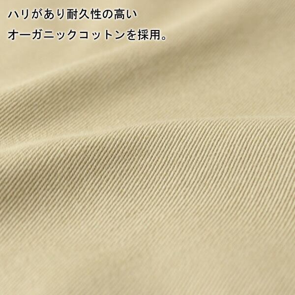 耐久性が高く、ハリコシのある、激しい動きにも耐えるオーガニックコットン使用のコットンツイルを使用し、雰囲気のある表情に染め上げています。
