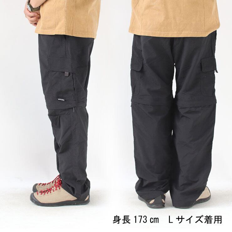 膝部分のファスナーによってショーツにもなる2WAY仕様で、マチのあるカーゴポケットをはじめ、7つのポケットを備えています。