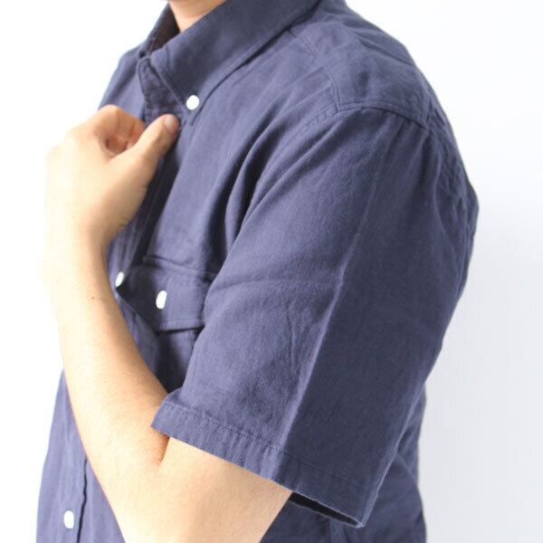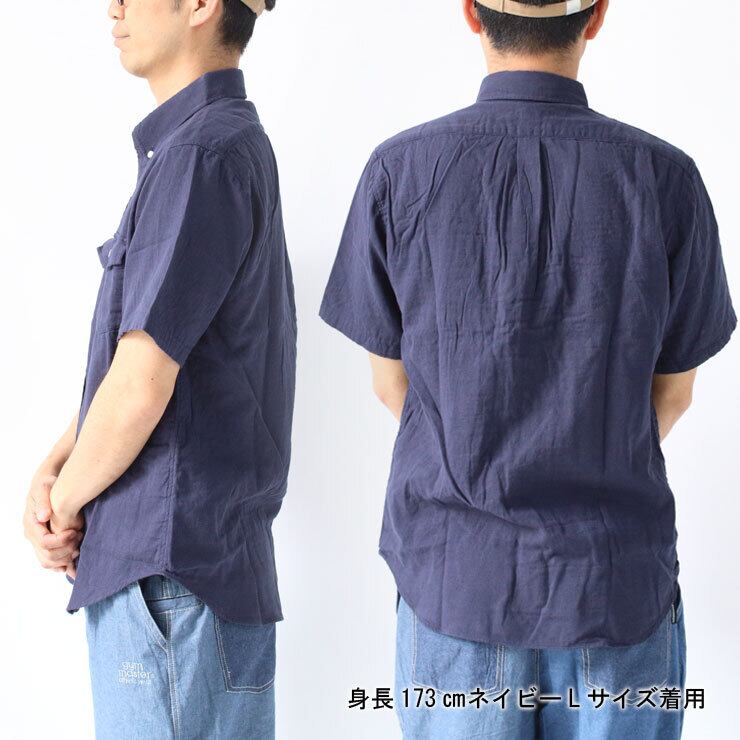 日本製 半袖 シャツ <ネイビー(28)> メンズ Wガーゼ ボタン ダウン シャツ 124-00