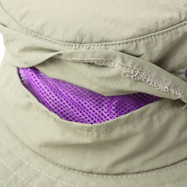 水をはじき、汚れに強いナイロン素材でアウトドアにぴったり。ベンチレーションがあるので内に空気がこもりにくく快適なかぶり心地です。取り外しができるあごひもがついていて便利。頭周りにコードが通っており、後頭部でサイズ調節が可能です。