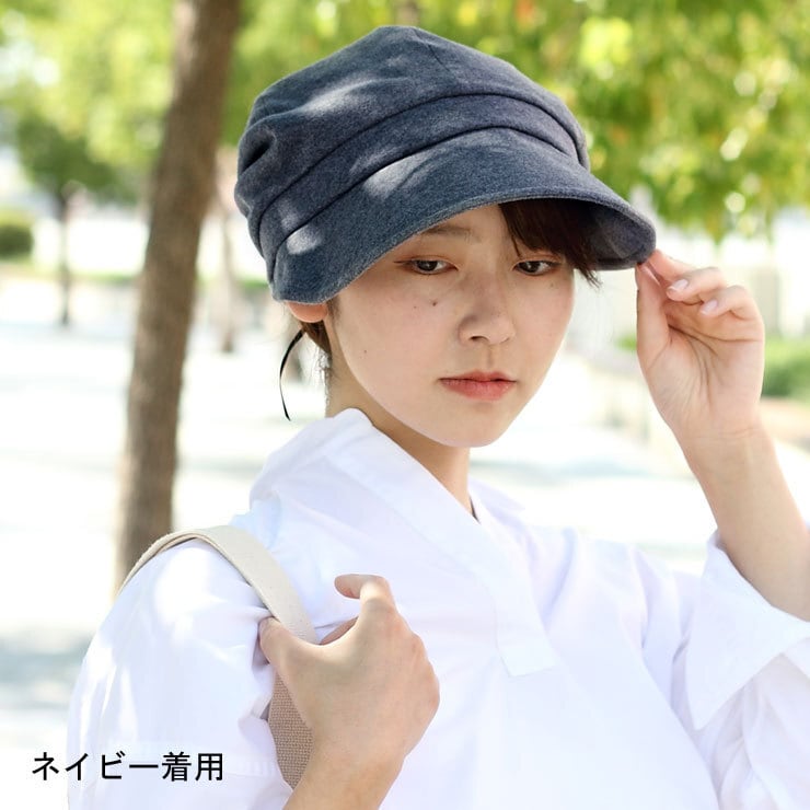 紫外線が気になる季節にぴったりの日本製つば広キャスケット。つばが長く横幅が広いワイドサイズのつばが顔周りをカバー。やわらかなつばはワイヤーが入っているので自在に形を変えることができます。後頭部は一部をつまんで縫い留めているので、さっとかぶってもふんわりとしたシルエットになります。頭周りにはひもを通しており、内側で絞って微妙な調節が可能。好みのサイズでかぶっていただけます。