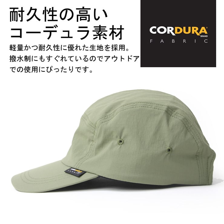 6つのパネルでつくられ頭にフィットするキャップ。耐久性に優れ摩耗に強く裂けづらいコーデュラナイロンを採用。また生地調達から縫製、仕上げまでの全工程を国内で行った安心の日本製製品です。
