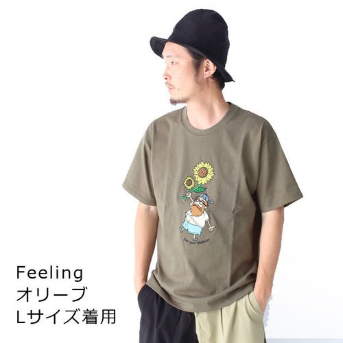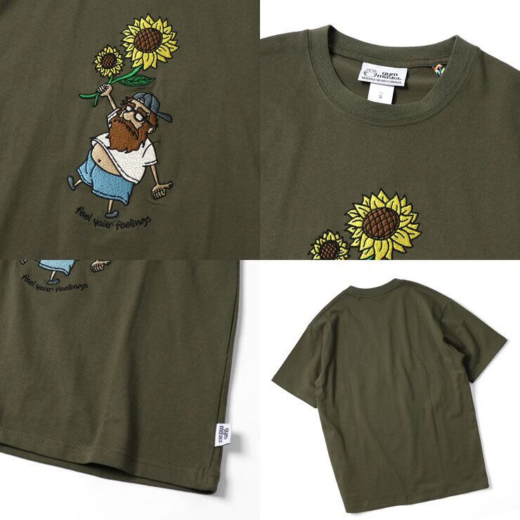 真夏のひまわりにゆられてプカプカと浮かび上がるおじさんの太陽のように眩しいFRONT刺繍TEE