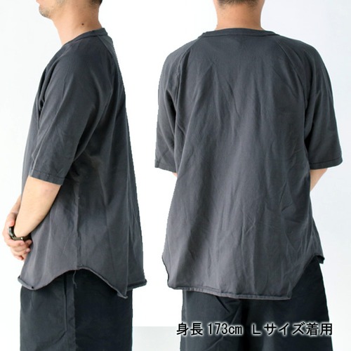 定番BASEBALL TEEを1/2スリーブにアレンジ。薄手ながらしっかりとしたUSAコットン生地を採用。縫製はJAPAN MADEです。裾はゆるやかにラウンドしていてラフなカットオフデザイン。肩回りが動かしやすいラグラン仕様です。