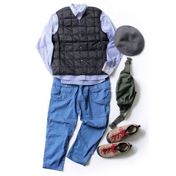 ”キレイ目カジュアルスタイルに欠かせないVネックダウンベスト”