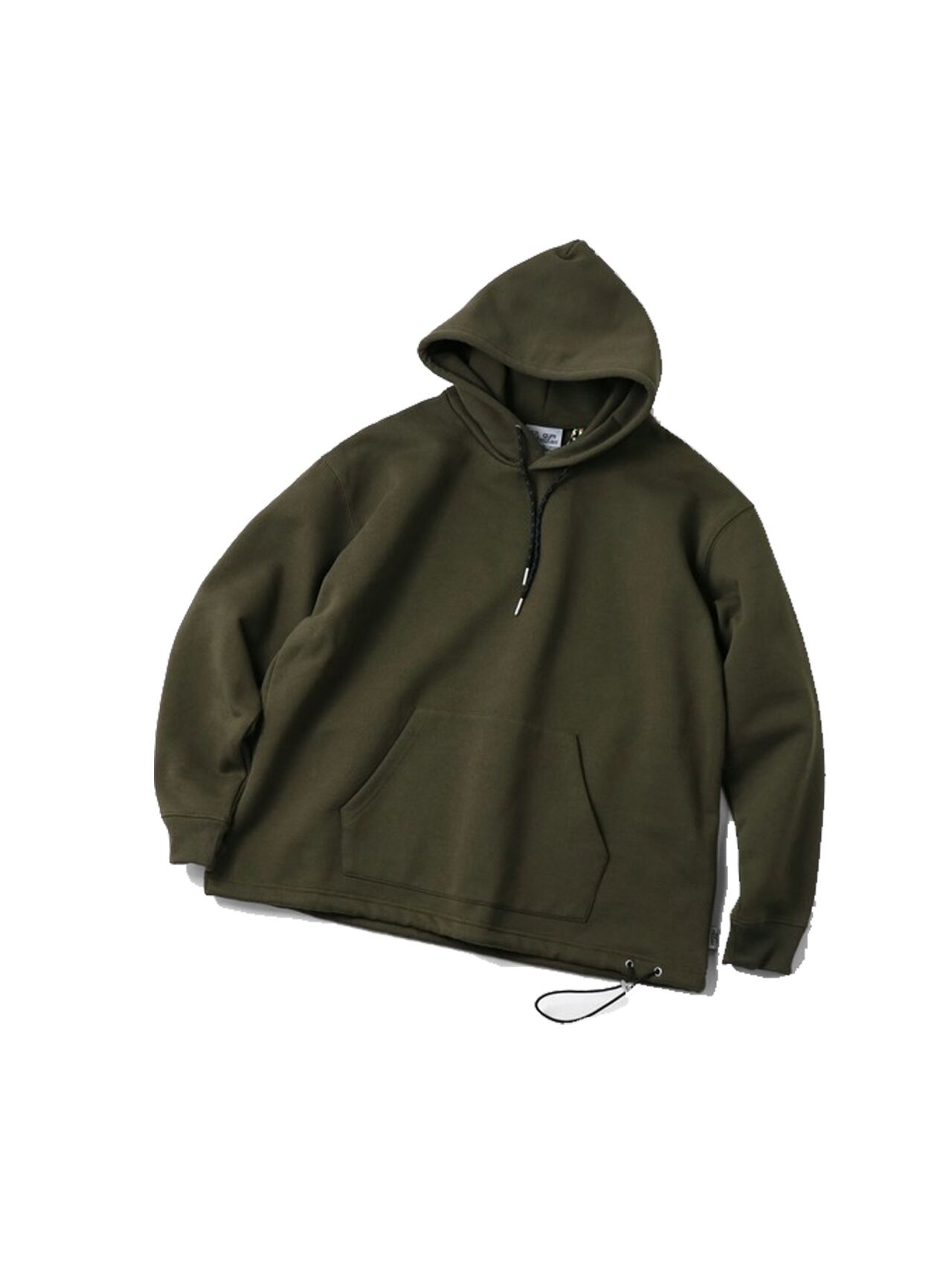 12オンスのヘビー裏起毛を使ったプルパーカー。 軽くふわりとした着心地で、 スウェットながら張り感があるのも魅力。 ややワイド幅で、肩落ちデザイン。 裾には配色のドローコードが入っており シルエットを変化させることもできます。 裏起毛になっているので、1枚である程度の保温性を 確保してくれるのも嬉しいです。