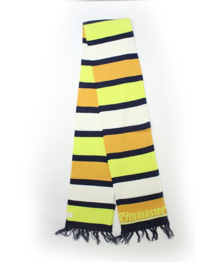 レトロなカラーリングの マルチボーダーマフラー。 ジャガードでジムマスターのロゴが 入っているのもポイント。 暗くなりがちなアウターにも映えるカラーリングです♪